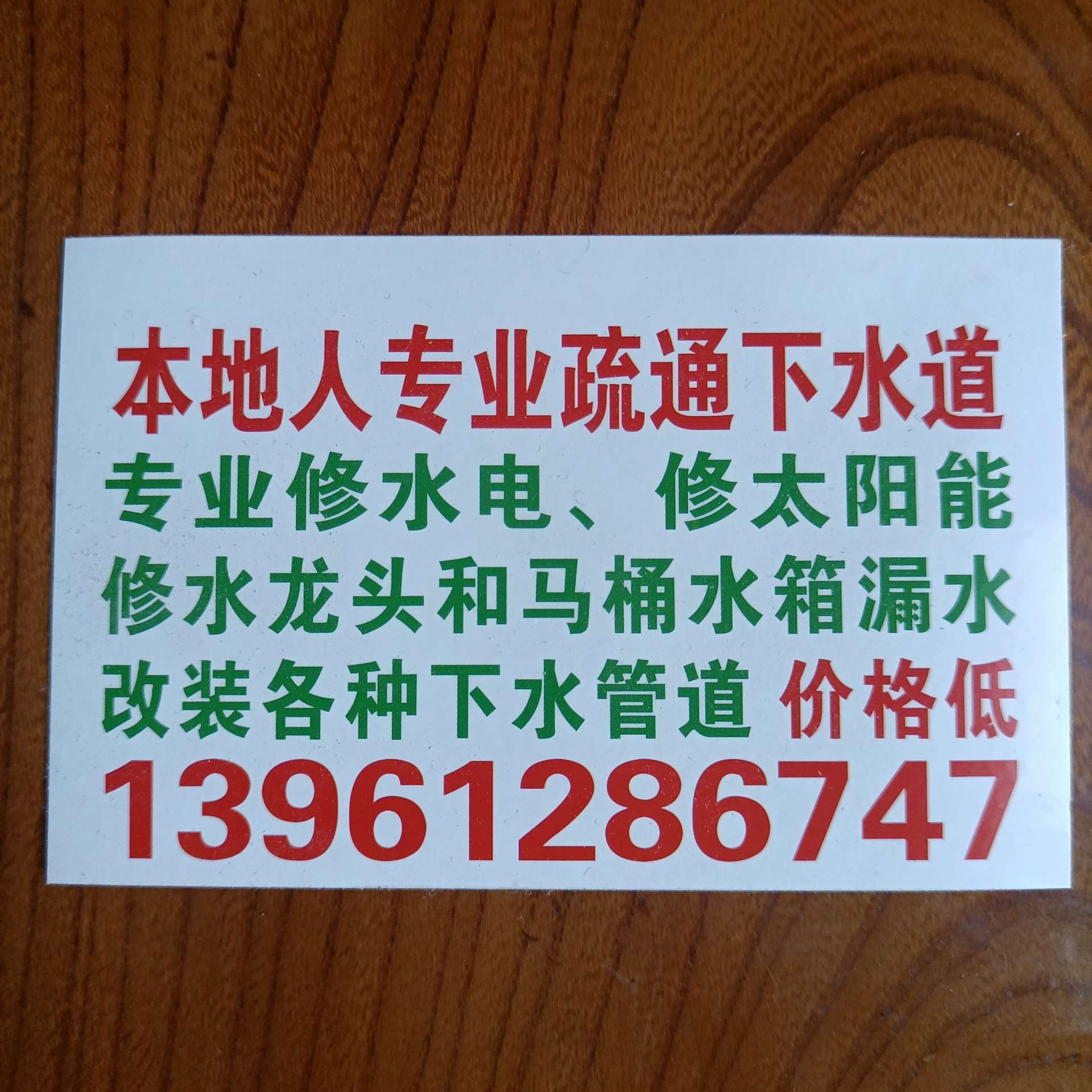 专业疏通下水道,修水修电,专修太阳能,马桶水箱漏水,修水龙头和角阀断裂,专修外墙落水管。价格全市最低服务最优,欢迎联系。