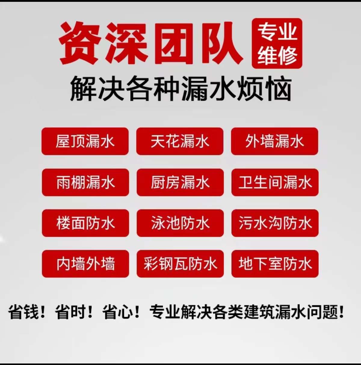 家里漏水的请注意了,您附近的防水补漏专家/提供免费上门勘察啦136852845685小时前 6305浏览房屋维修