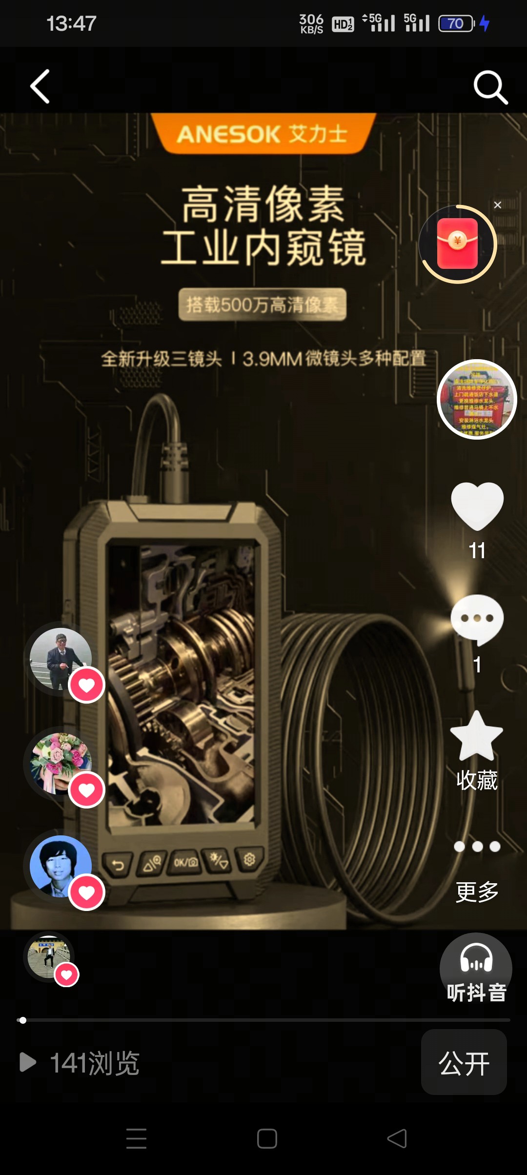 孙师傅用管道内窥镜打捞黄金.