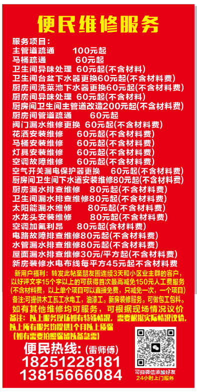 房屋维修,水电维修,卫生间防水堵漏,管道疏通,家装工装,电焊加工。
