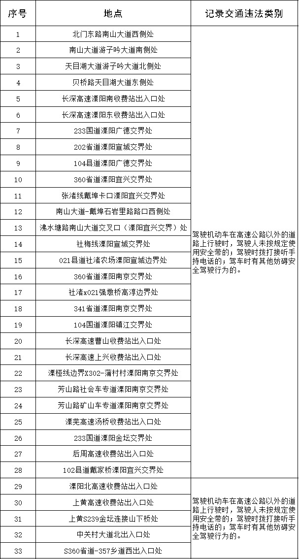 关于公布交通技术监控设备(调整抓拍违法类型)地点的公告