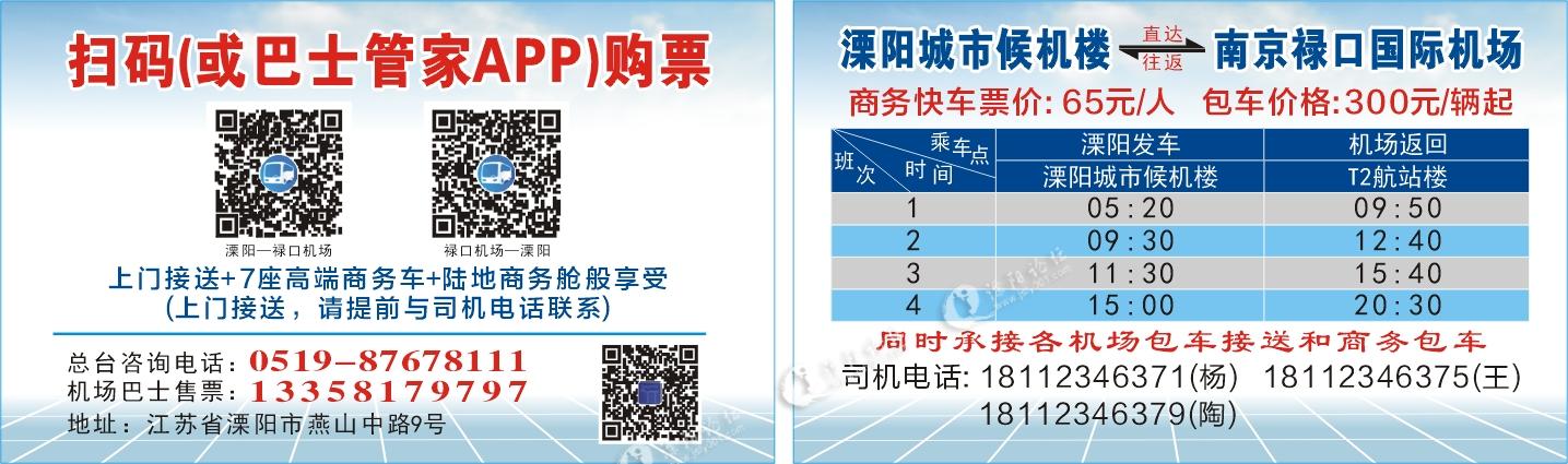 为满足广大旅客的乘车需求,溧阳城市候机楼溧阳-禄口机场班次从2019年3月26日起调整如下,请根据具体班次时间合理安排出行。