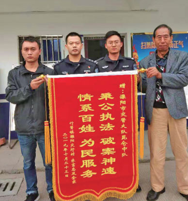 (邵曦乐)“我们真心感谢交警的帮忙,他们跑出跑进找监控视频,还找人现场模拟,最后帮我们找到了肇事司机,我要为溧阳交警的认真负责点赞。”10 月 28 日上午,记者接到了来自受害者家属的电话,他对市公安交警大队昆仑中队的交警们表示感谢。因为交警们的细致认真,肇事司机张某被抓获,被撞伤的受害人得到了应有的赔偿。当天上午,一面锦旗送到了办案民警昆仑中队副中队长杨宏手中。