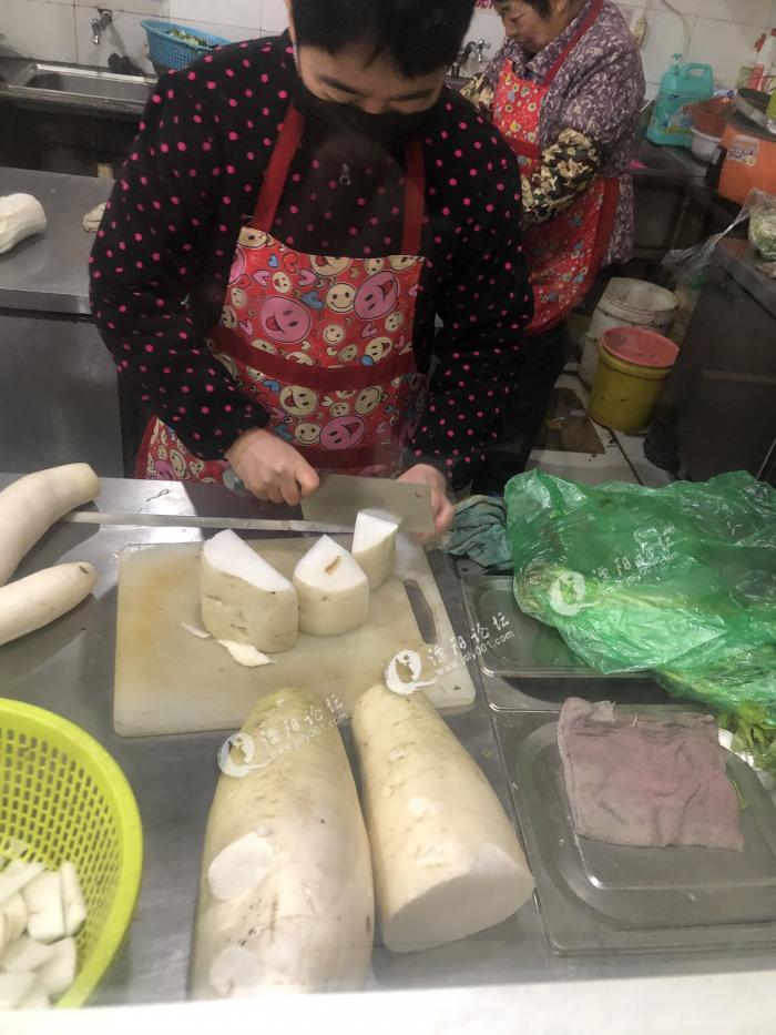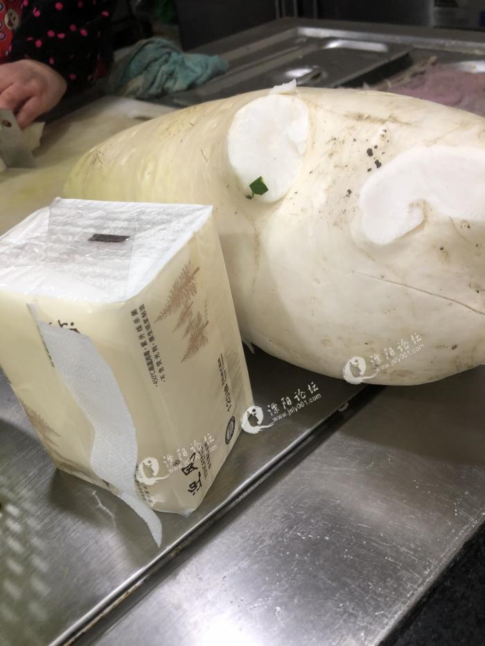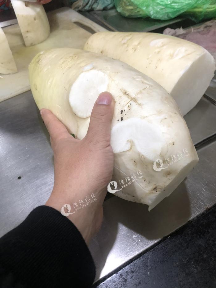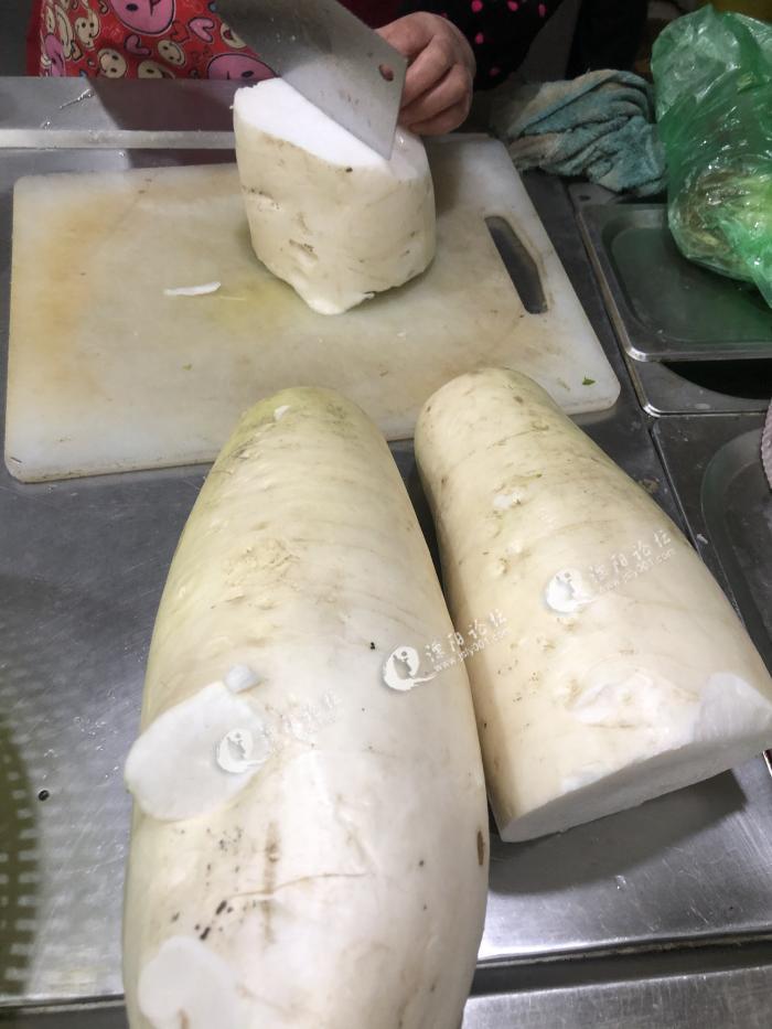 一个普通萝卜通常只有一两斤重,可是昨天去溧阳大毛面馆吃饭的时候,看到老板娘正在切的一个萝卜特别大,我还是第一次见到这么大个的,感觉十分稀奇。我用手大概量了量,的确比平常萝卜大了很多。好奇之余还跟老板娘闲聊了几句,她说这个萝卜是乡下的一个老头子自己种的,用的都是鸡粪这些天然的有机肥料,从来不打农药,我想正是因为天然、有机、无污染,所以这样种植出来的萝卜,不仅长势好,口感也好!