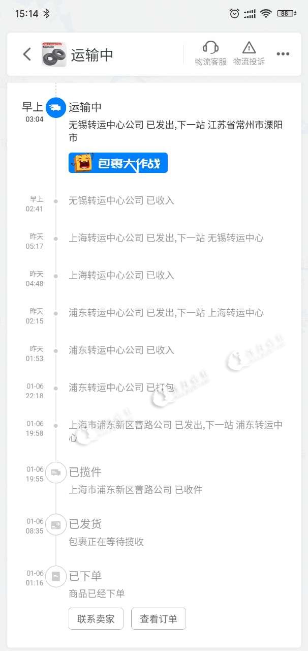 年前网上买东西能不发圆通还是不要发圆通了。。上海发到溧阳要整整三天。。还有一个广东的1月3号买的,一直到今天还是已揽收收件。