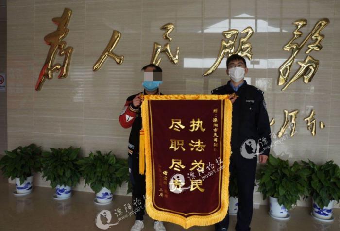 日前,谢某专程到天目湖派出所,向办案民警赠送一面写有“执法为民、尽职尽责”的锦旗,感谢公安机关破获诈骗案件,为其挽回经济损失。