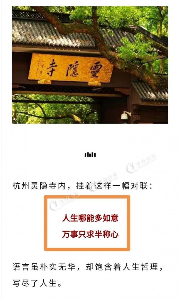 此联出自江南名刹灵隐寺,这幅对联是得道高僧所书?还是俗家才子所撰?暂不去研究,但却道出了人生真谛。