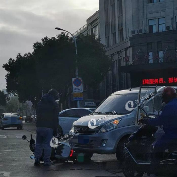 今天早上7点左右,正是上班高峰期的时候,在溧阳码头街万家灯火大酒店门口,发生了一起事故,一辆面包车和电瓶车撞上了,庆幸人员没有问题。确实,早上7点多一般都是上班上学高峰期,车流人流都比较大,不管是骑车还是开车,都要注意,遵守交通规则,车速也不能过快,上班高峰期一定要慢!慢!慢!