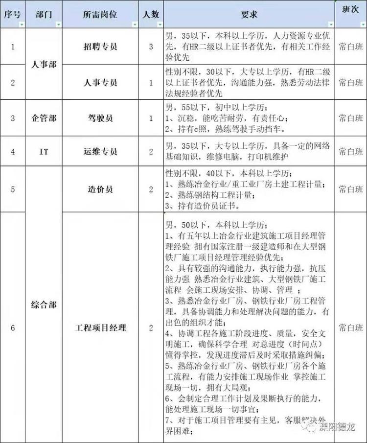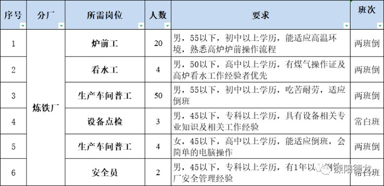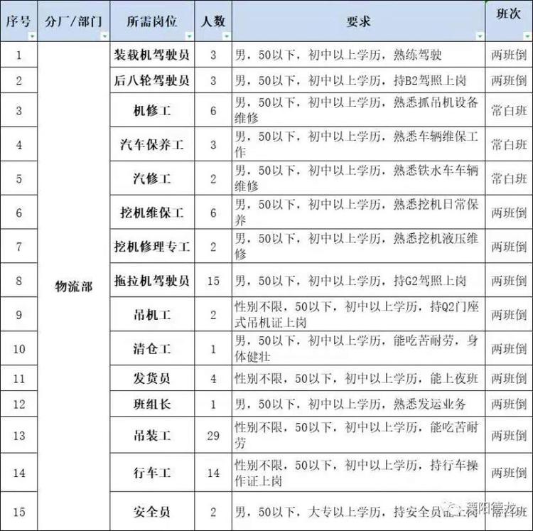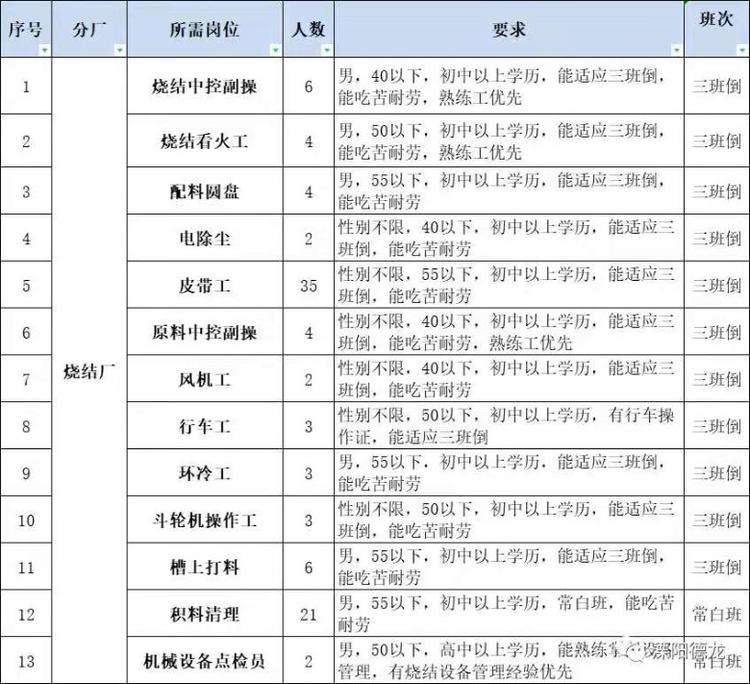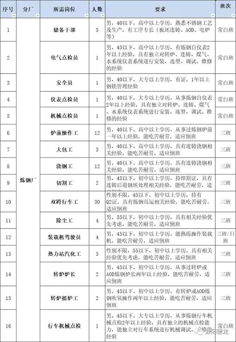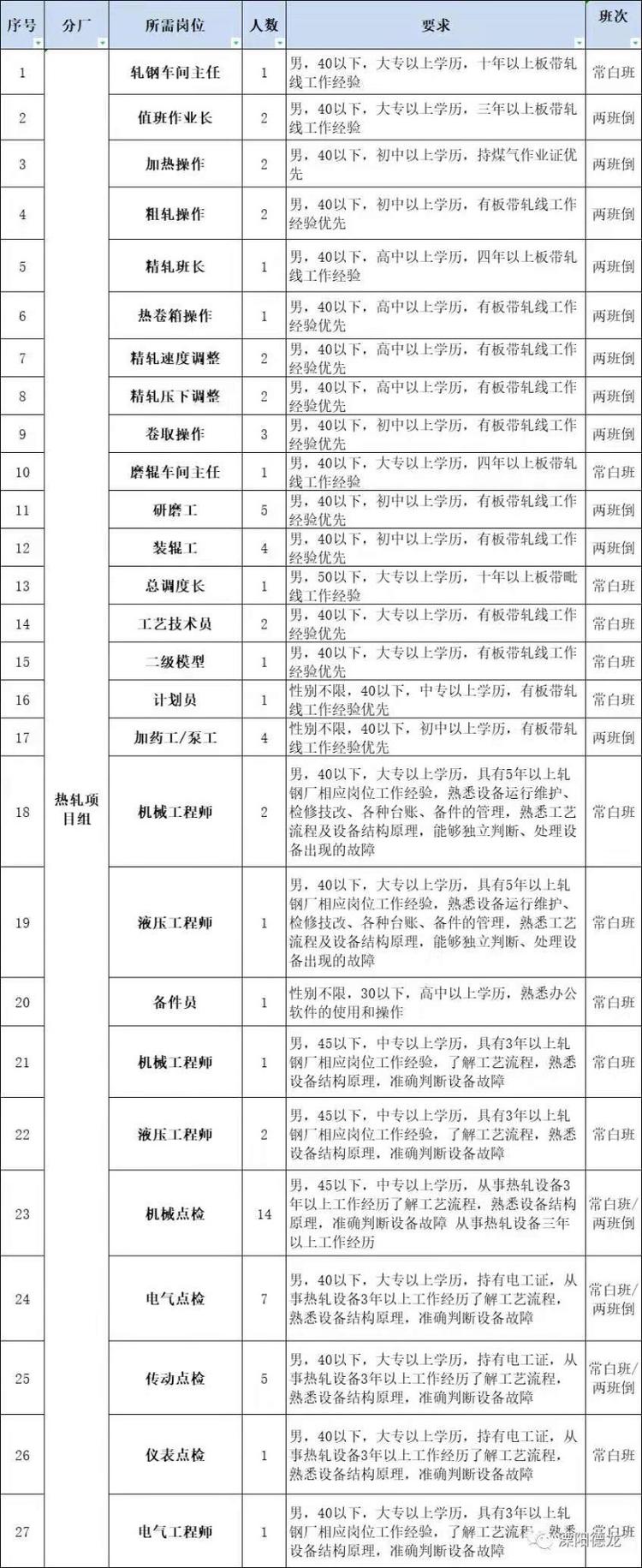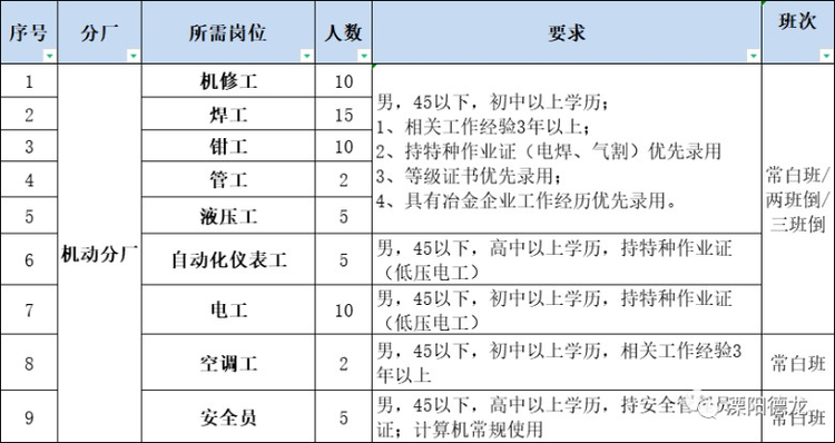 | 招聘职位: | 普工,机电液,机修工,行车工等等 |
