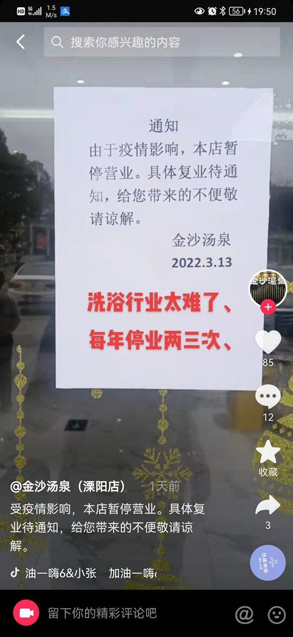 现在疫情那么严重,抖音上看到金沙汤泉还在营业?(已回复)