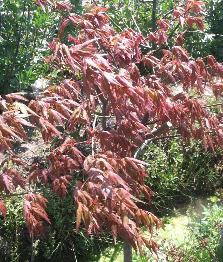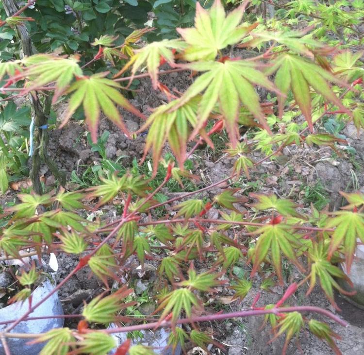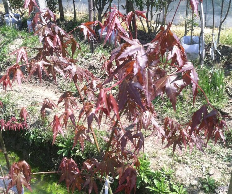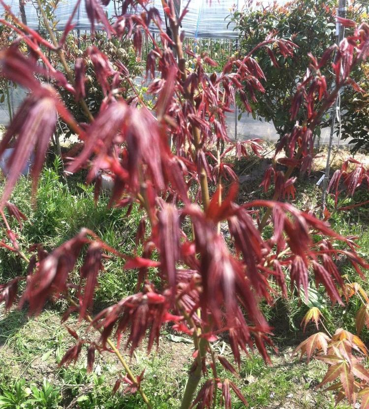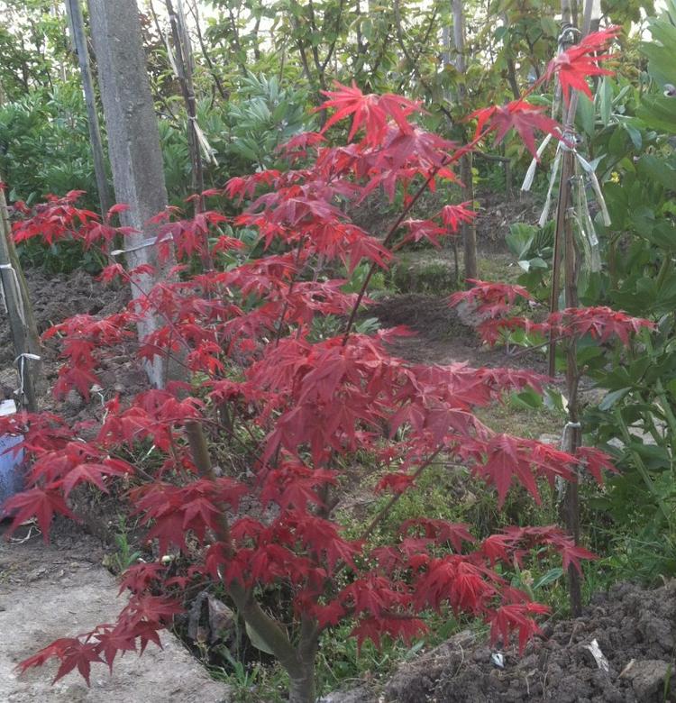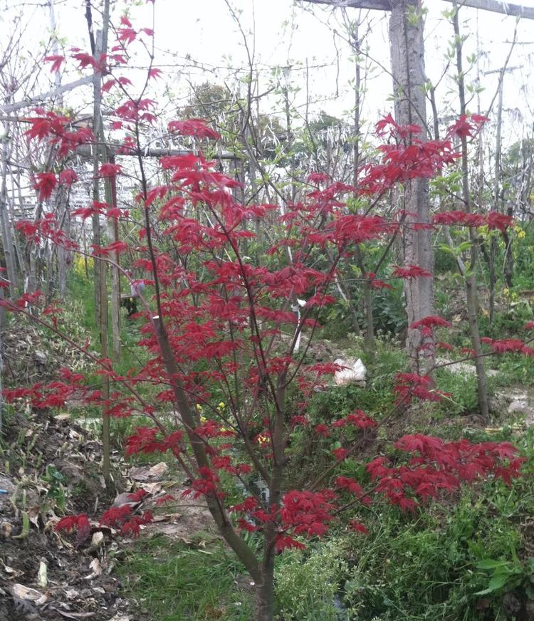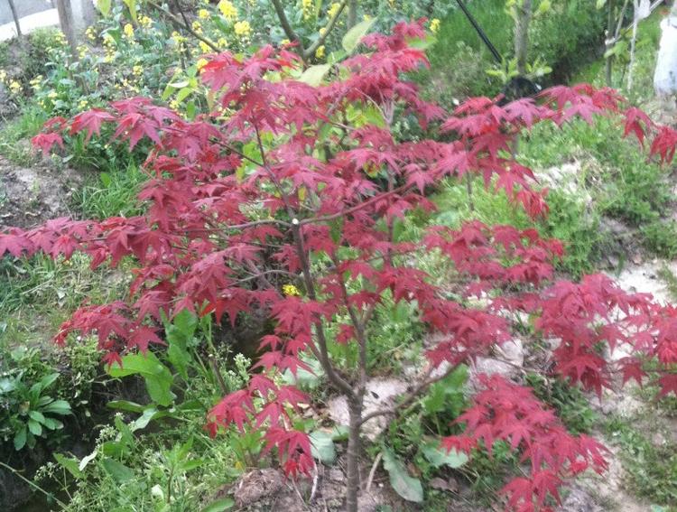 红枫是一种非常美丽的观叶树种,其叶形优美,红色鲜艳持久,错落有致树姿美观。广泛用于园林绿地及庭院做观赏树,以孤植、散植为主,宜布置在草坪中央,高大建筑物前后、角隅等地,红叶绿树相映成趣。它也可盆栽做成露根、倚石、悬崖、枯干等形状,风雅别致。尤其是日本红枫品种繁多,所以人们很难分辨出品种名称。这不,在我的百草园中,不知不觉,几个品种的红枫在暮春季节都各自展示叶貌,颜色可谓异彩纷呈,令我目不暇接,不知品名。不管3721,先把它拍摄下来,让坛友中的内行人帮我辨别,也未尝不可。呵呵。