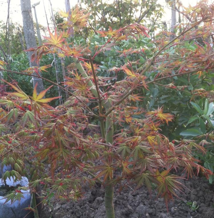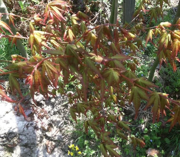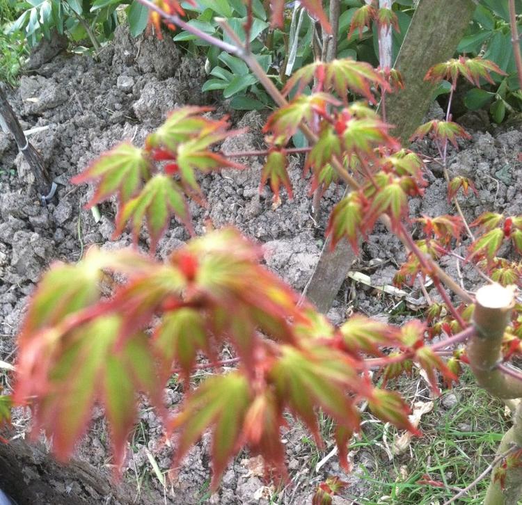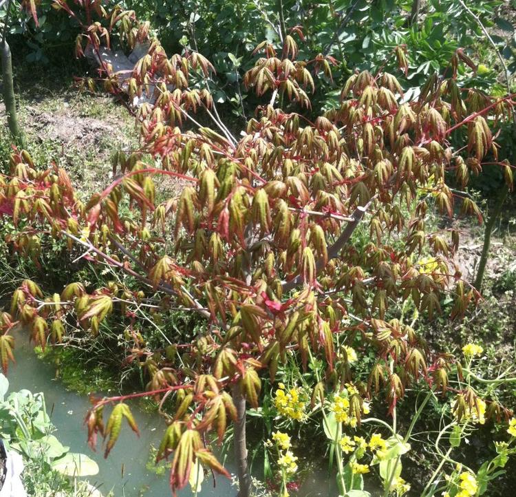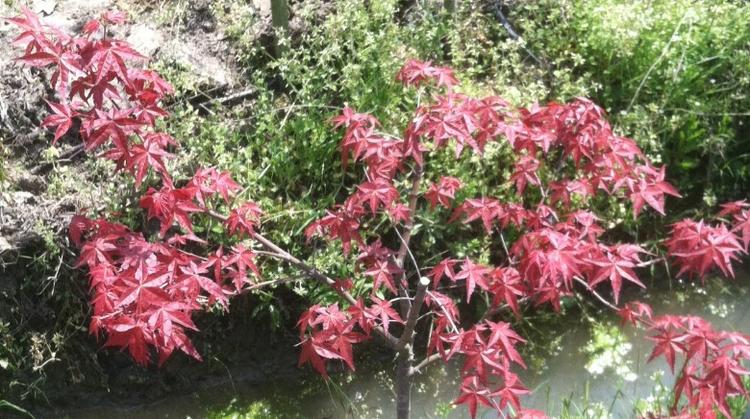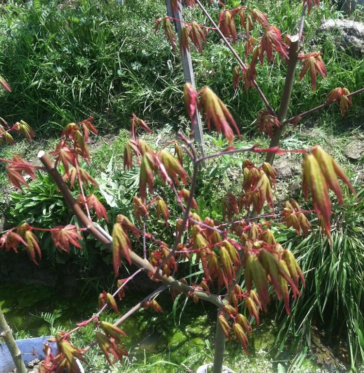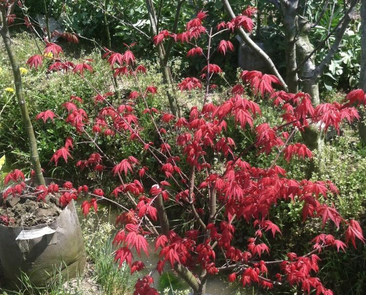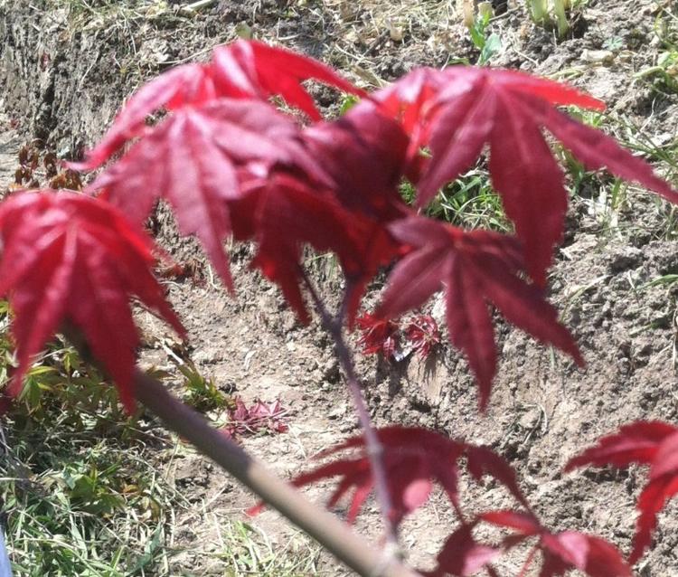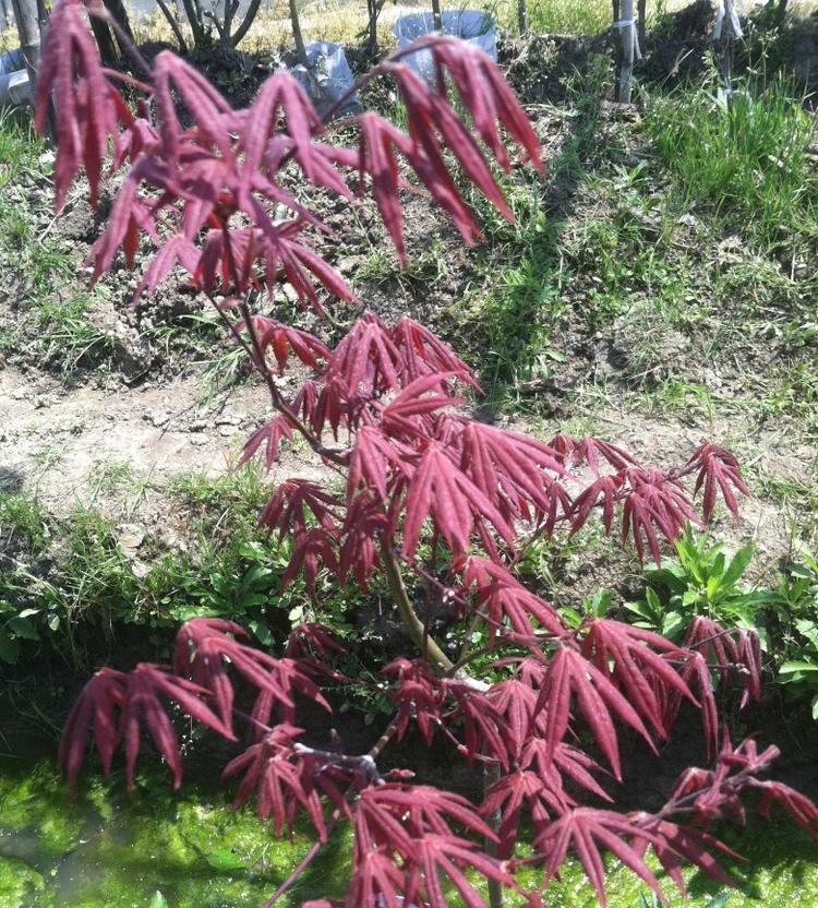 红枫是一种非常美丽的观叶树种,其叶形优美,红色鲜艳持久,错落有致树姿美观。广泛用于园林绿地及庭院做观赏树,以孤植、散植为主,宜布置在草坪中央,高大建筑物前后、角隅等地,红叶绿树相映成趣。它也可盆栽做成露根、倚石、悬崖、枯干等形状,风雅别致。尤其是日本红枫品种繁多,所以人们很难分辨出品种名称。这不,在我的百草园中,不知不觉,几个品种的红枫在暮春季节都各自展示叶貌,颜色可谓异彩纷呈,令我目不暇接,不知品名。不管3721,先把它拍摄下来,让坛友中的内行人帮我辨别,也未尝不可。呵呵。