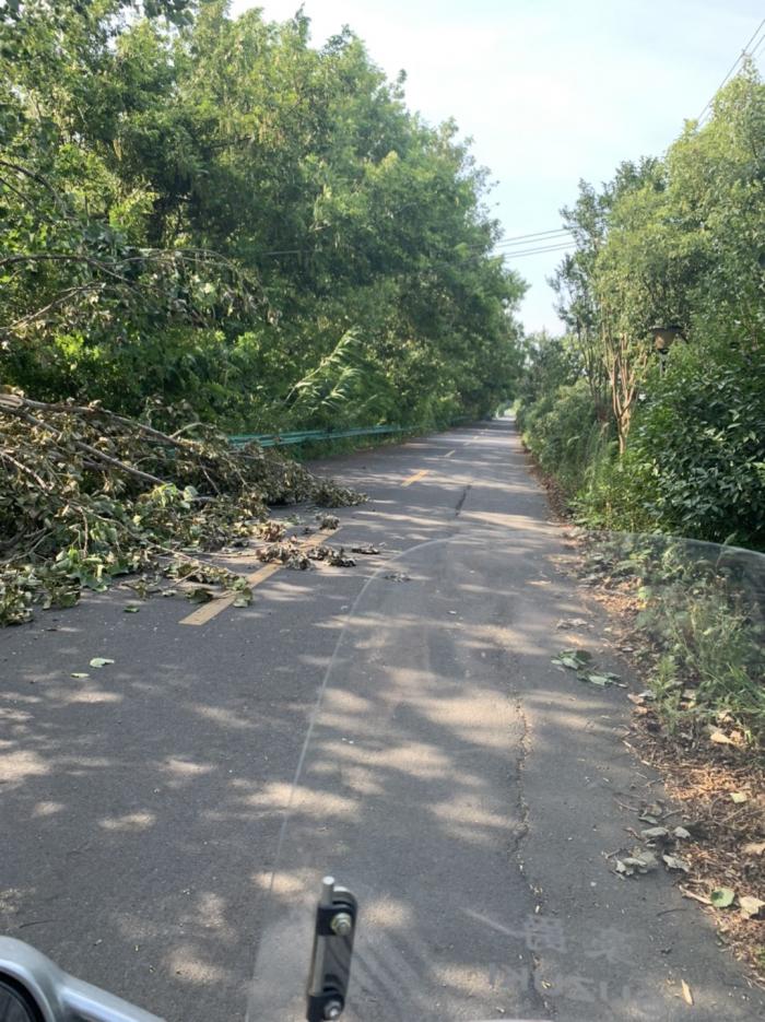 埭头大东荡往埭头去方向,河边这个大树,上面的小枝不能砍掉么?有风必断,砸到车么能修,砸到人,怎么办?谁的责任?
