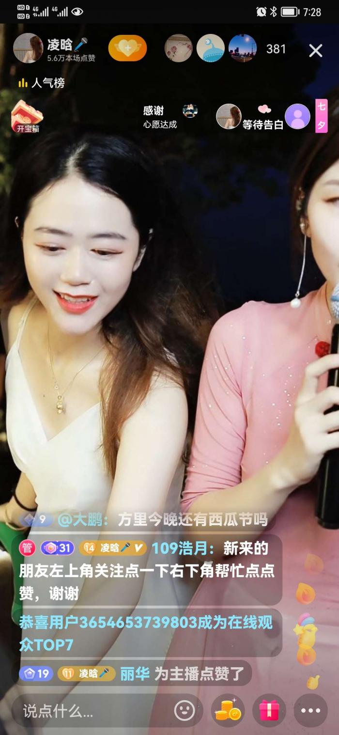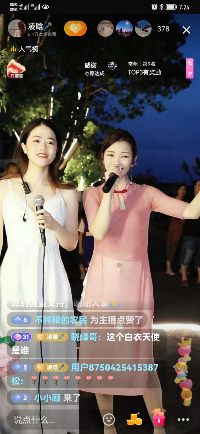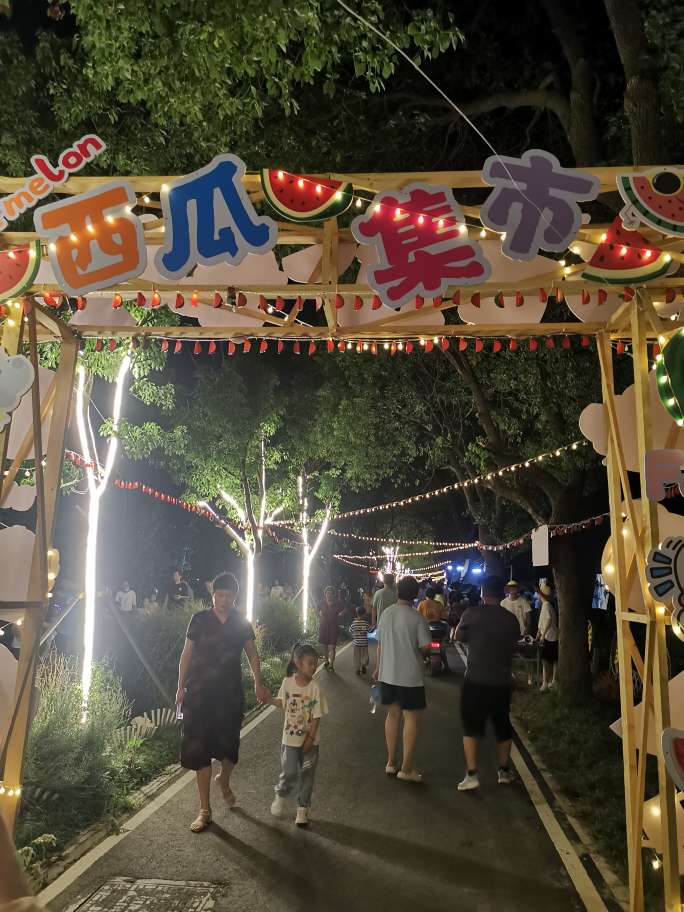 听说方里西瓜节今天要结束了,吃了晚饭也去凑了热闹,到那才七点钟,村前马路两边车都停满了,人挺多,西瓜集市也热闹。路路通又来卖磨刀袖器,凌晗已在直播了,方里本村一位姐和凌晗互动合唱很吸人眼球,颜值高,唱得也好,和主播合唱了好几首,不知姐抖音号,明天肯定涨粉,差点赛过主播。