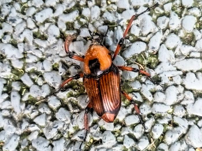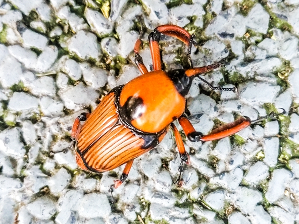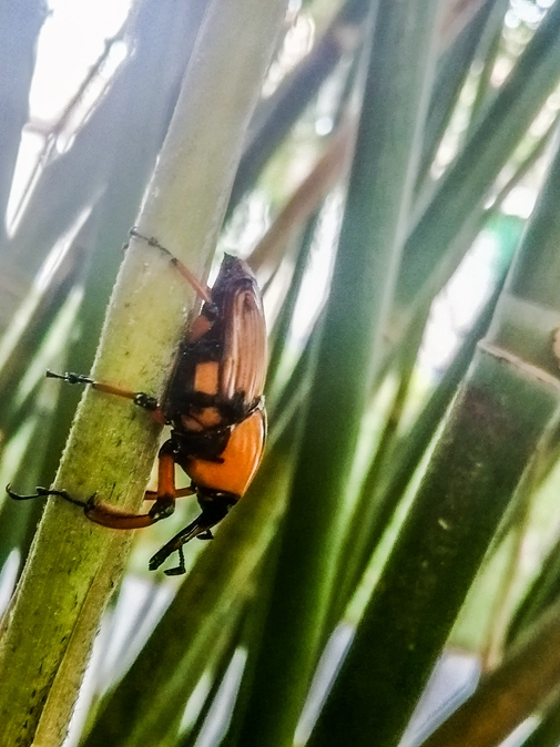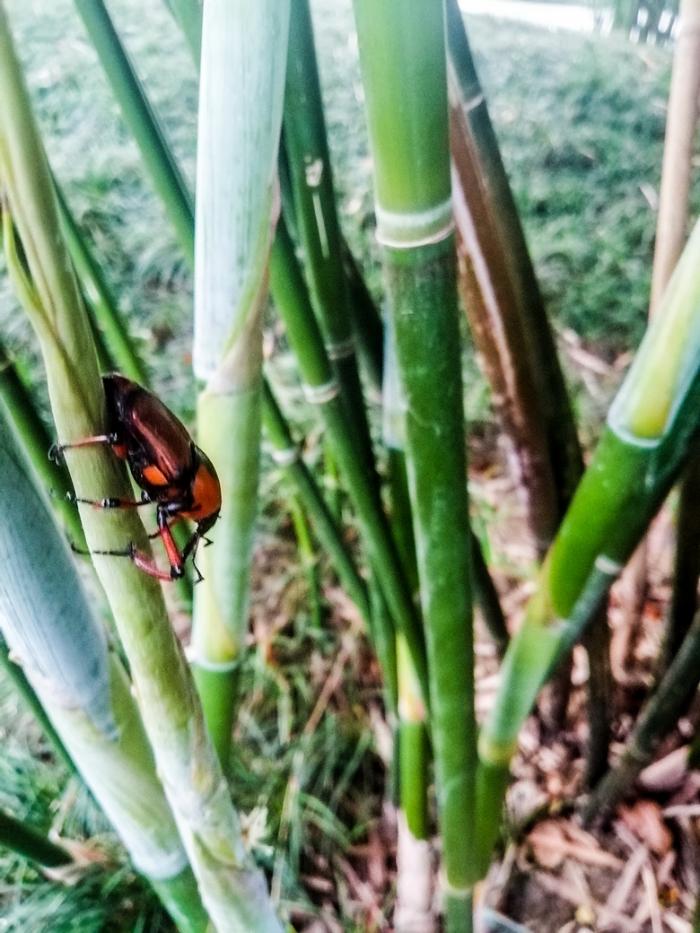 2022.8.20日,我在丁园公园内散步,在公园里聊天的邻居告诉我,他们发现在竹子上出现一种硬壳子甲虫,专吃刚出来竹笋,附近几处都已发现了。经虫危害的竹笋上面枯萎,不能长大成竹了。他们立即从竹子上找到这种虫给我看,我就用手机拍了几张照片,发给大家看看。以前我从没发现过这种虫子,有谁认识这种害虫吗?这种虫会飞迁,对竹笋、竹林破坏性极大,有这虫出现的地方竹笋都长不大,不能成竹子。请看图片!