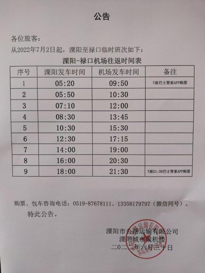 溧阳到禄口机场大巴开了吗?