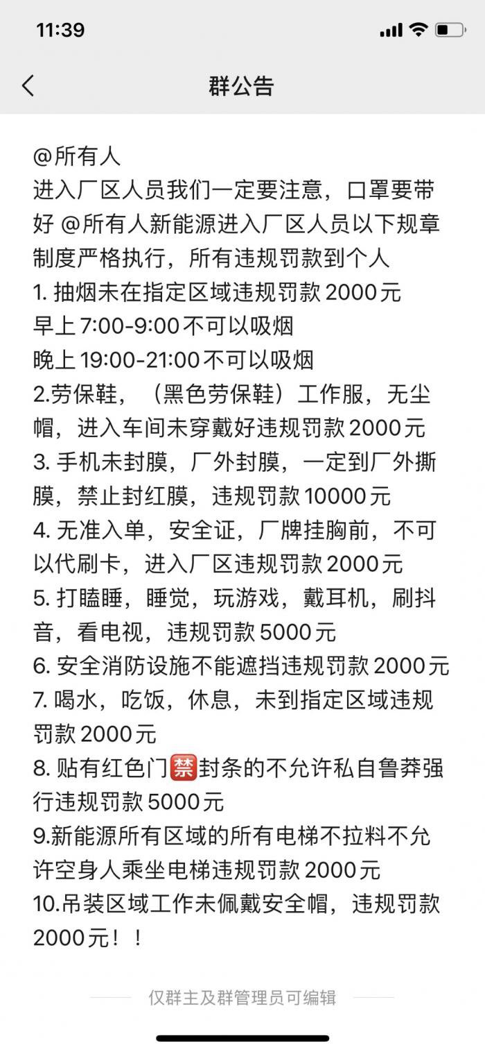 广大网友们、事情已解决、感谢大家的关注,此贴关闭。时代第三方负责人已积极跟本人沟通达成协议。1:要求劳务结清我的工资2:工作群公告的大额罚款系底下班组长管理威慑发布、并不作为罚款依据。3:时代第三方负责人表示今后用工会加强基层管理,在用工问题上用工量跟招工量会根据实际生产需求开展!