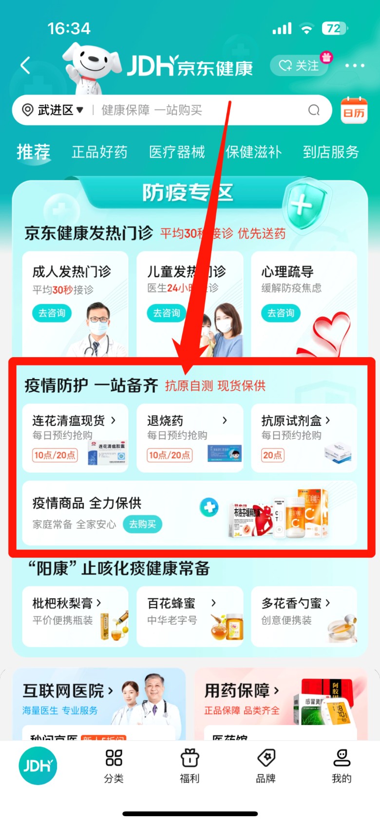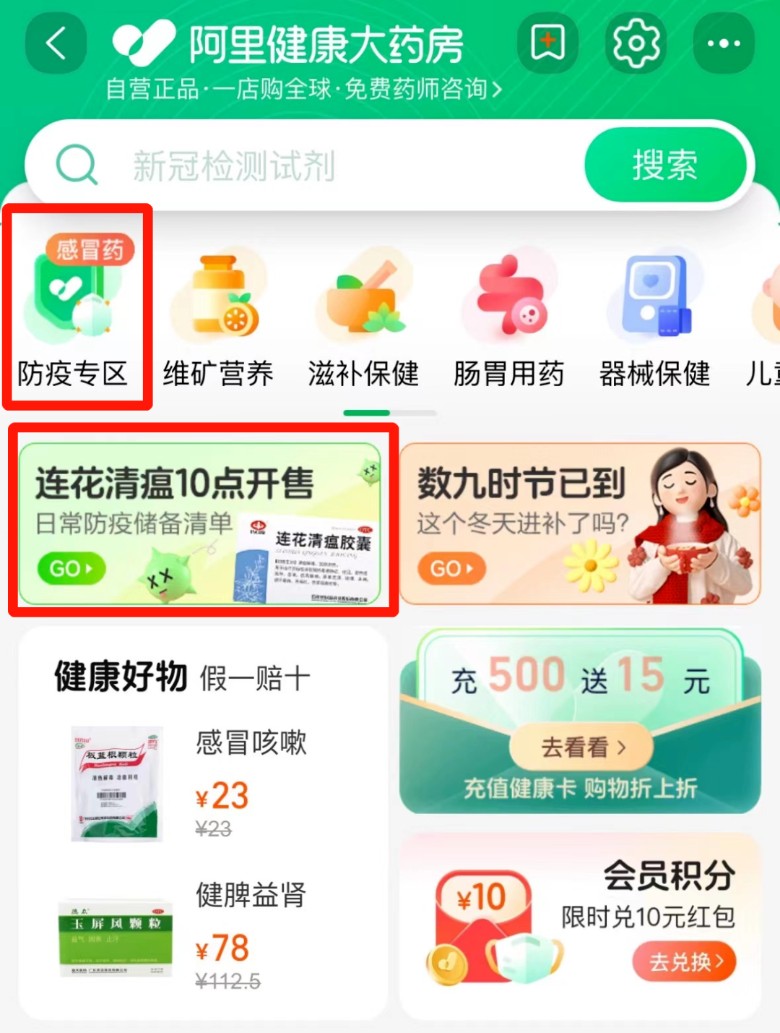 注:部分防疫药品、抗原限时限量预约抢购,具体限购要求见商品/活动页面。