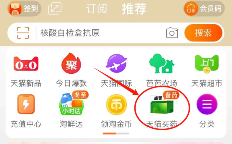 打开淘宝APP,在首页进入【天猫买药】即可看到当日药品、抗原等抢购信息。