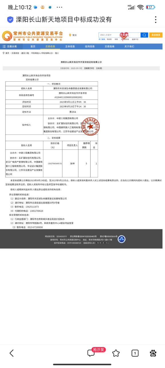 网上刚刚看到的 长山新天地合作开发项目。中标价好多个万,工期10年,未来可期。