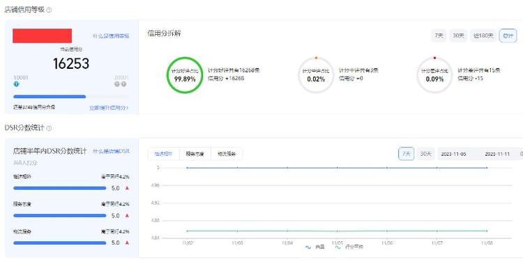 店铺的基本信息请看图一,图二。2020年3月开始做的店铺,目前做了16253单,再做3700单就可以两皇冠。