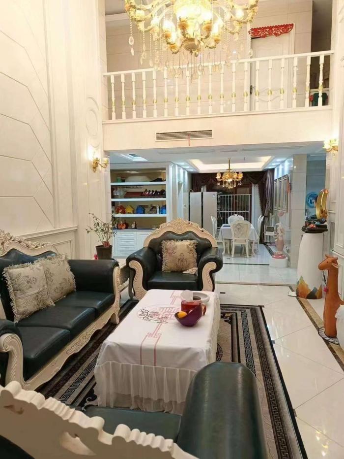 华府天地空中别墅,20+21楼,房产证面积191.6平,实际面积约320平,楼上楼下两层,两卫一厅一客厅,设施齐全,欧式装修了100万,拎包入住!报价348万,看中可谈