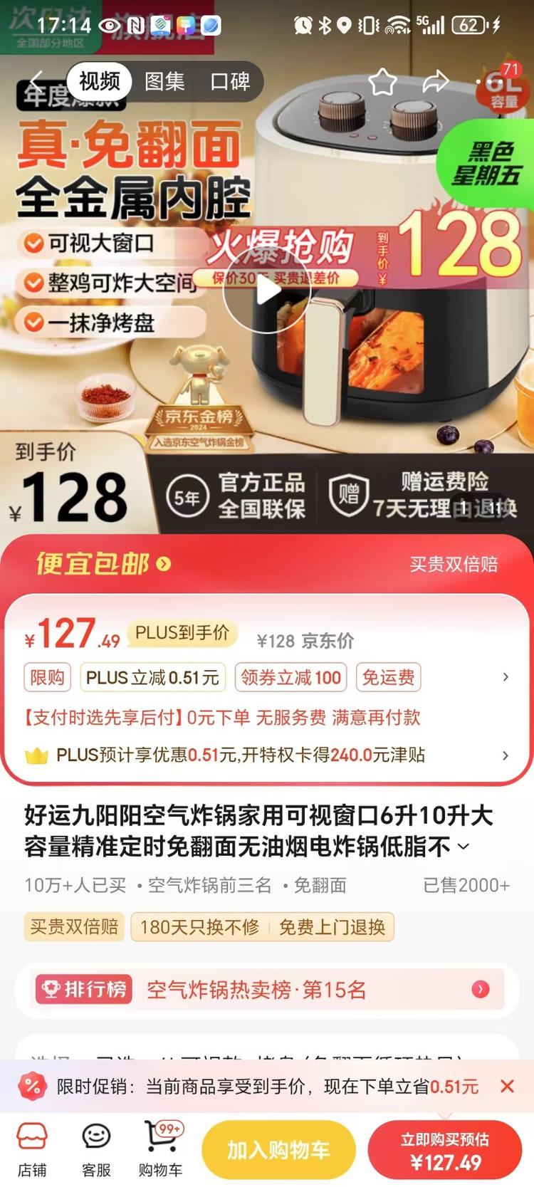 全新未拆封的空气炸锅大甩卖!京东价128,现半价出售啦!