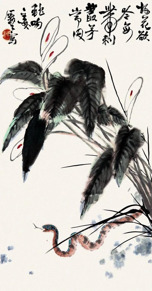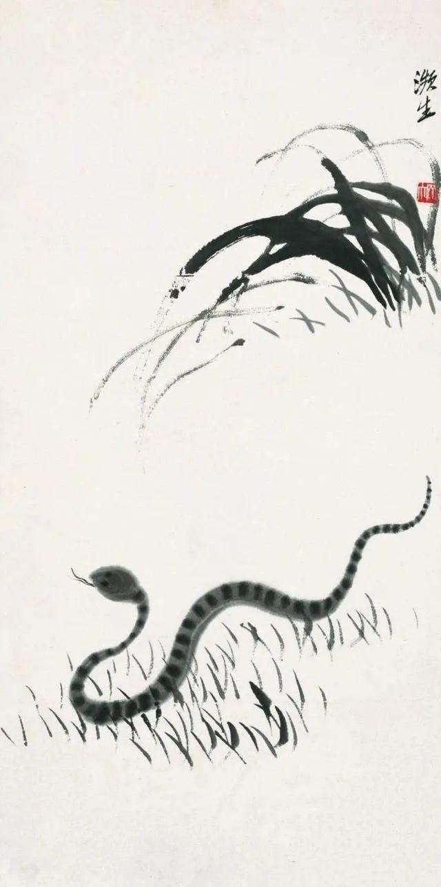 对于绘画而言,蛇的形象,是线的形象;蛇的运动,如同书画中的线条游走;书画的线条,亦如蛇行蜿蜒。所谓笔走龙蛇、状如龙蛇、烟云龙蛇、疾若惊蛇、惊蛇入草、腾蛇赴穴……无不是神气恣出、精神灿然之生动写照。