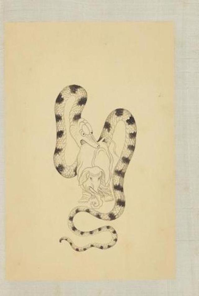 清 《门应兆补绘萧云从离骚图中册》之《一蛇吞象》