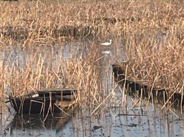 三月春寒未褪,礼诗圩160亩荷塘褪去盛夏的繁盛,呈现出“枯荷听雨”般的禅意美学。焦褐色的荷茎以几何线条勾勒出抽象画境,倒映在初融的春水中,与偶现的白鹭形成动静对照。白鹭或伫立浅滩梳理羽毛,或掠过水面惊起涟漪,为萧瑟的荷塘注入灵动生机。这种残荷与生命的交织,恰似东方美学中“寂”与“生”的哲学辩证。枯荷与白鹭