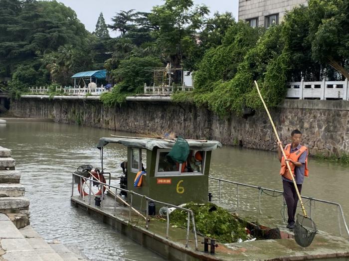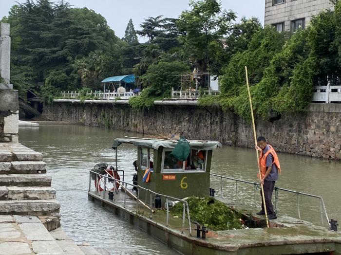溧阳老城区河道水面的清洁,离不开环卫工人的辛勤努力