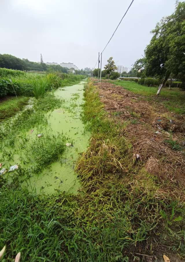 此处是位于104国道1234公里牌处东边的泄洪沟,为保证泄洪功能稳定水利站于2025年6月对此处进行清淤,村委已第一时间赶到现场,确认目前沟内的浮萍不会影响泄洪排水功能。目前已联系施工方,近期将对泄洪沟内的垃圾和水花生进行集中清理,确保沟体环境整洁,保障泄洪功能稳定。