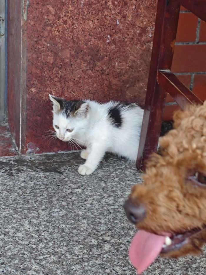 这只小奶猫太可爱啦!怯生生地这儿瞅瞅、那儿看看,面对狗狗还有点小紧张,小模样萌到心坎里,好想把它抱在怀里rua一rua~