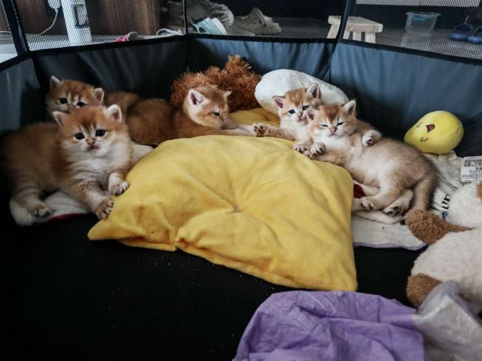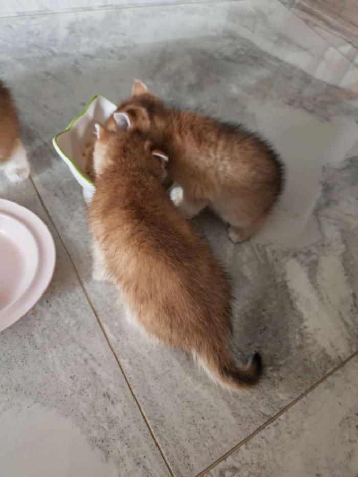 自家养的金渐层,头胎生了5只,还3只小公猫待出,8月6日出生的,能自己吃猫粮用猫砂了,有兴趣的可以联系我V 18915878838