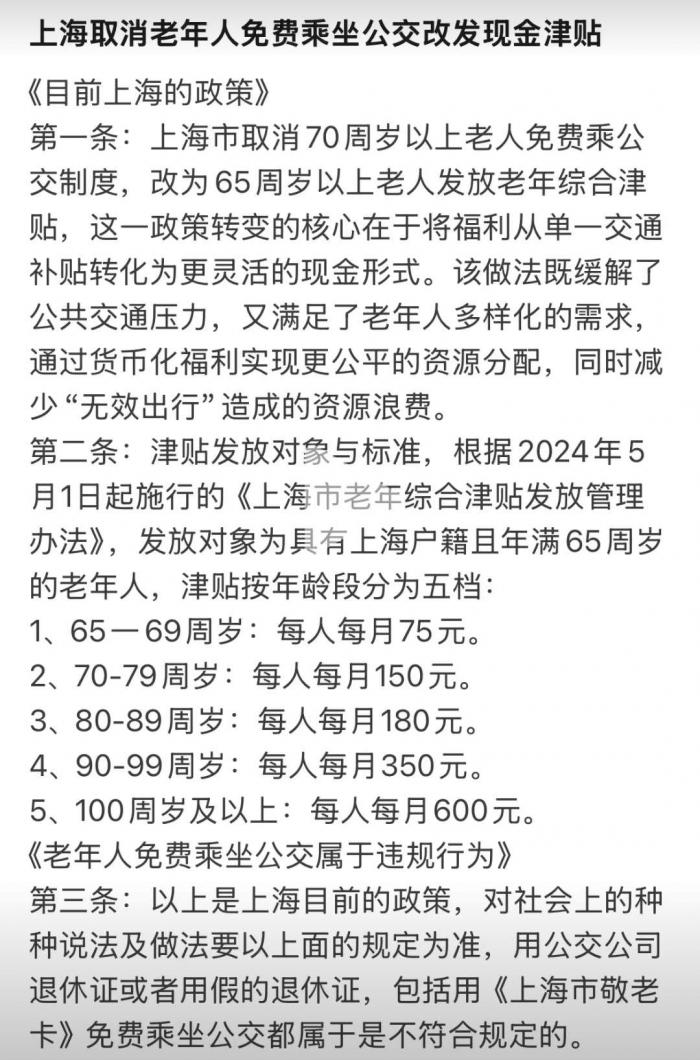 上海的公交优惠政策只是大城市中的特例,我所在的成都,也是实行老年人免费乘坐的政策。所以不该比的不要比、没必要什么都和上海看齐。