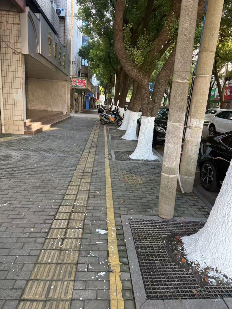 溧阳街头的树刷白,意味着寒冷的冬季也快来了