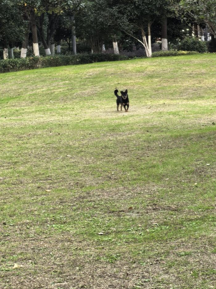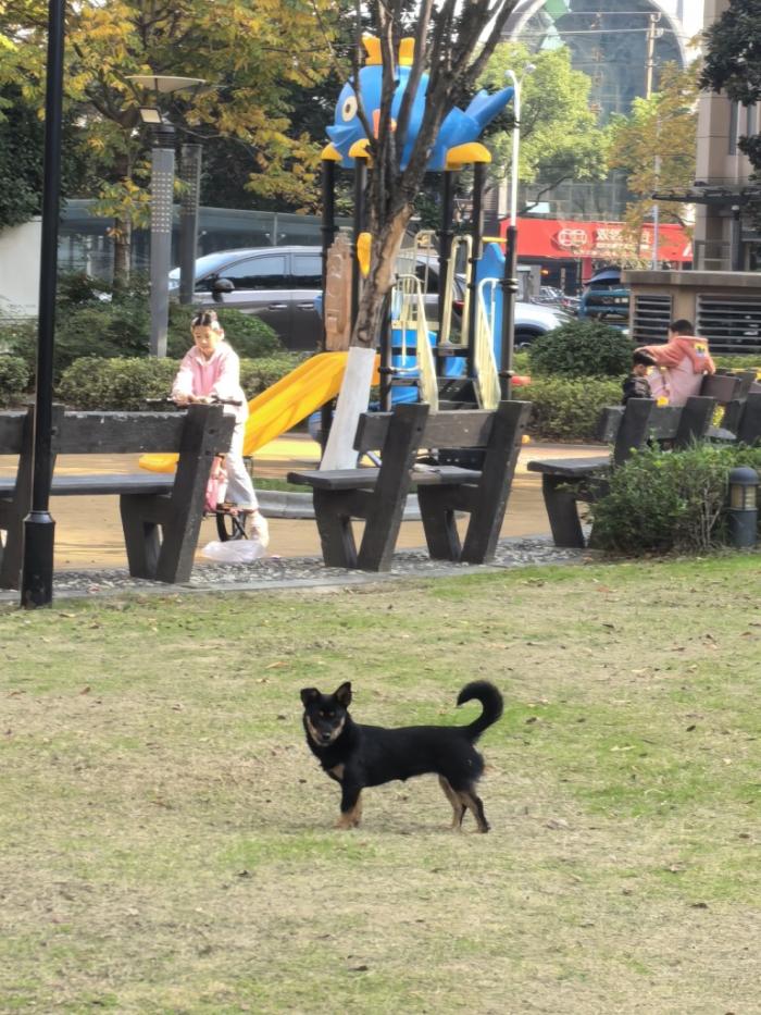 甘露名苑一区公园草坪上一只黑狗呆了好几天