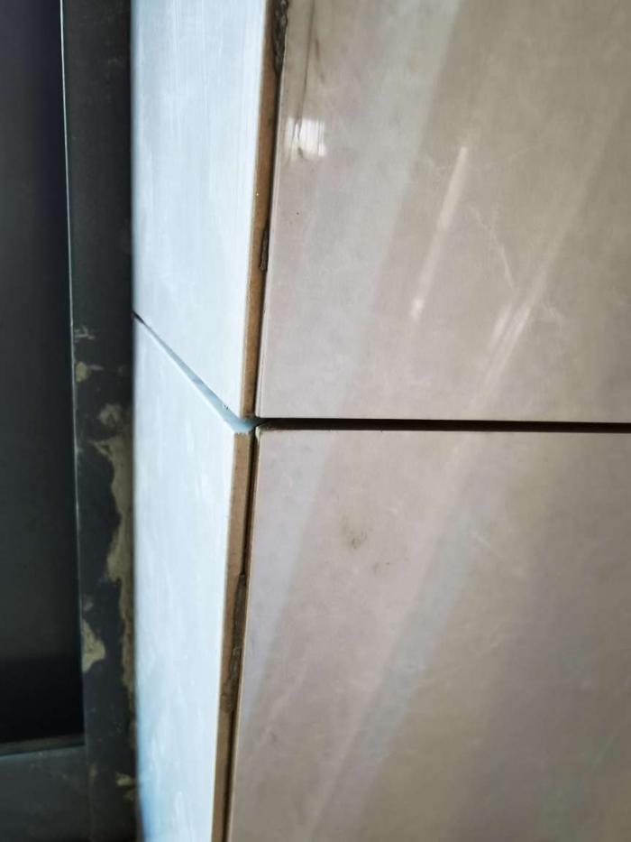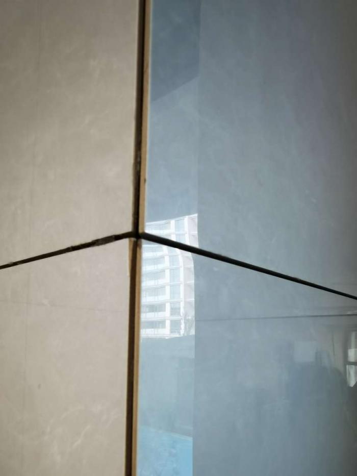 之前发现贴的不对称的时候,他们说没事,美缝做完以后就看不出来了歪的了。结果波浪纹艺术展示