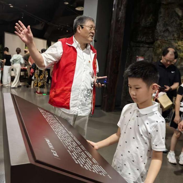 从方里出来,我们又驱车前往溧阳博物馆。刚走进展厅,便撞见了兄长的熟人——溧阳市博物馆“最美志愿者”,2024年溧阳市首届溧阳好人,溧阳市文旅局公共文化体育中心老干部党支部记朱为人(老电影人)。他刚脱去志愿讲解员的红马甲,本已收拾好东西,准备赶赴一场饭局。可瞧见我们一行人,朱书记二话不说,立刻与兄长打招呼,亲自陪同,为我们重现溧阳的过去。