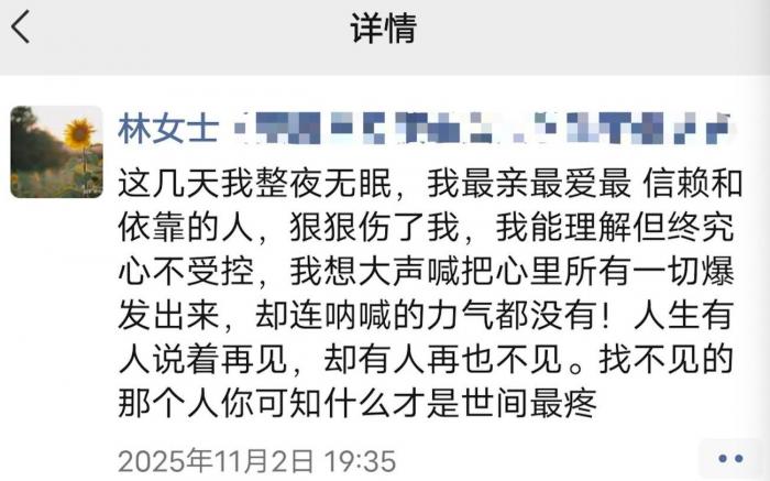 林女士告诉红星新闻,第一次在殡仪馆见到女儿,李群嘴角、眼角都滴着血,脸部乌青。“我跟他们说,这不是我女儿,不是我女儿,你们搞错了。我女儿被黑车带走了,马上就被警察找回来了。”林女士说,“我女儿最爱漂亮了,在人生的最后阶段,她却死得那么残忍。”“我唯一的诉求就是,判林伟强死刑,立即执行。”林女士反复告诉红星新闻。她说,自从本案进入司法程序后,她就对法律的公平公正充满信心。“林伟强身体发抖,说好话求生”去年9月一审庭审,是林女士第二次见到林伟强。但由于林伟强背对着听众席,她未能看清其面目。林女士回忆,当时在庭上,林伟强为了逃避罪责,声称和李群没有分手,仍是恋爱关系。公诉人指出,警方8次讯问笔录中其均承认已分手,而且很多共同朋友都作证两人已分手。事发后,林女士被疾病和情感折磨,身体几乎垮掉。她常在半夜发朋友圈,表达对女儿的深切思念,“人生有人说着再见,却有人再也不见。找不见的那个人,你可知什么才是世间最疼。”一年多来,林女士全靠丈夫悉心照料。