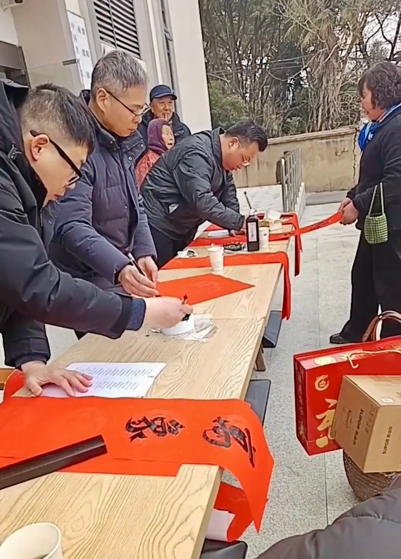贴春联是过年的仪式感之一,溧阳南渡镇强埠村的党群服务中心门口还特地摆了摊现场写对联,领的人还挺多。看着这一个个“书法家们”在现场挥毫泼墨,写下对新年的祝福,喜气洋洋的,年味更浓了。