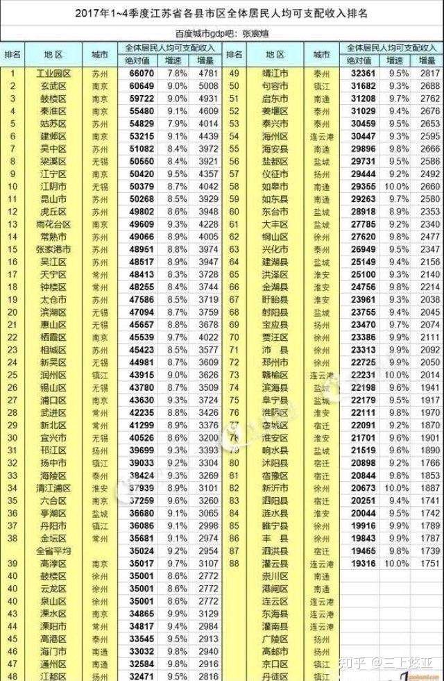 2018年更新:2017年人均可支配收入,苏锡常倒数第一,全省平均都没达到。