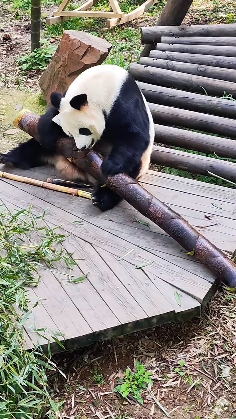 溧阳巨大冲天炮笋,熊猫有福了~感觉在南山竹海养的两只熊猫都挺幸福的,每天睁眼就是吃不完的笋,吃了一茬还有一茬,看起来也白白净净的,就是每次去看熊猫的时候要坐小缆车才可以,位置感觉也有点小。