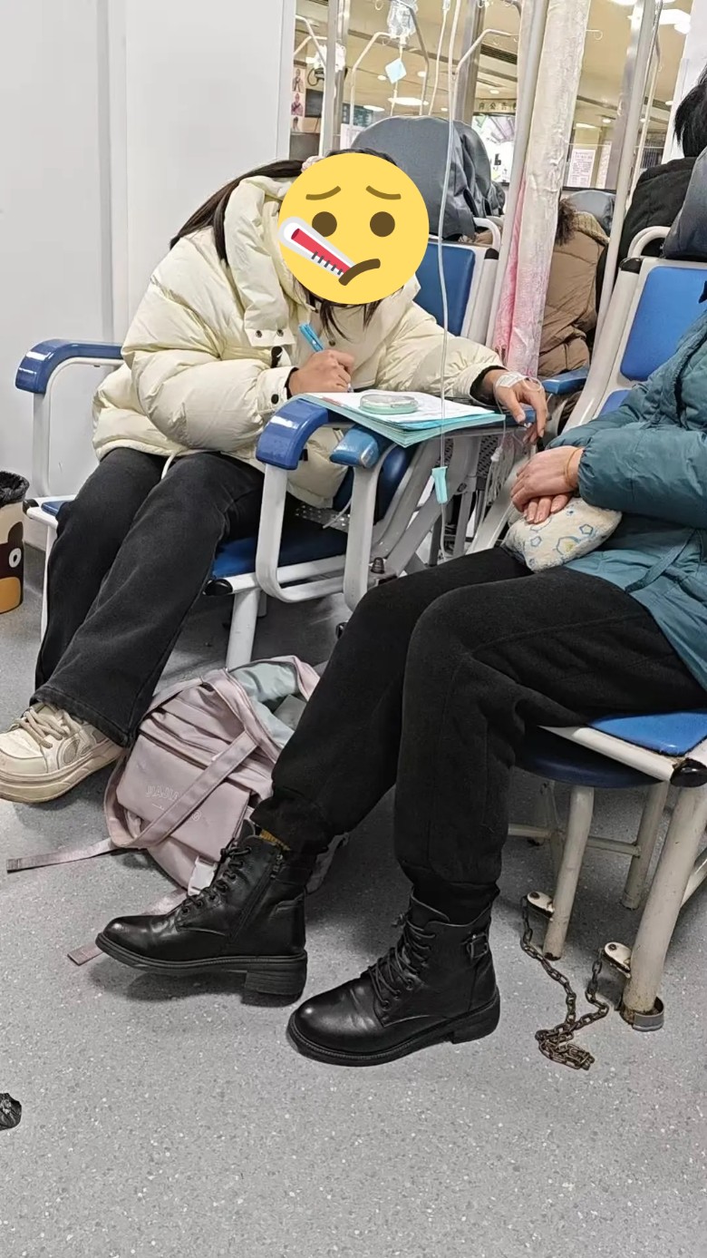 现在的孩子们也是好点不容易的,输着液还得写作业