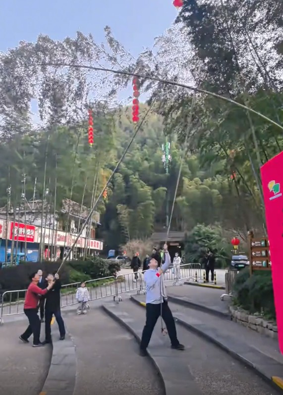 溧阳南山竹海挂灯笼,原来是这样操作的,再一次认识到了竹子的韧..