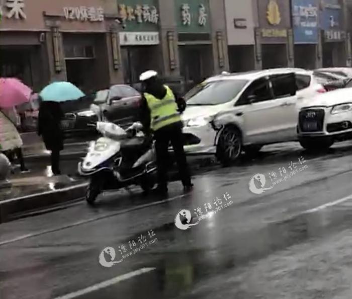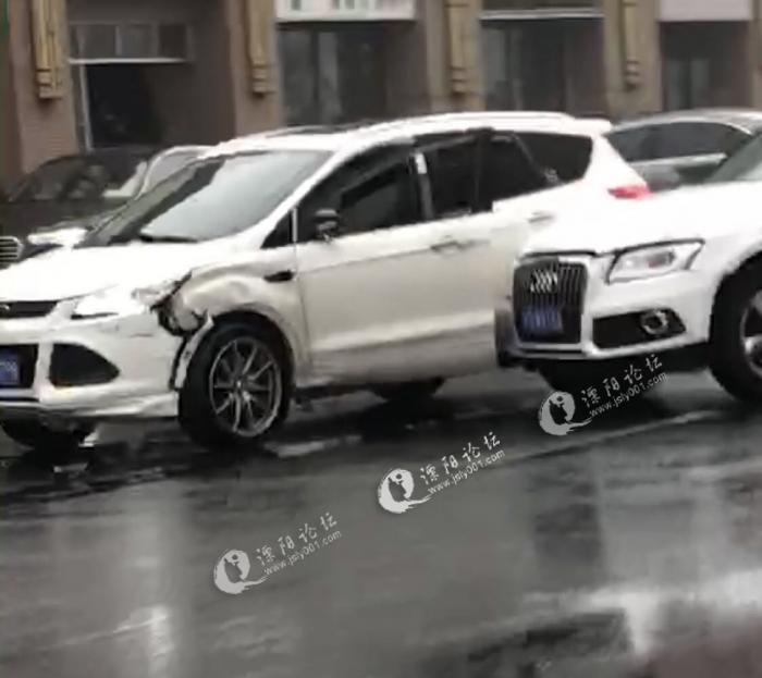 溧阳建设路欣欣水果店那那边两个小轿车撞了,现场两辆轿车,其中一辆车都撞“通”掉了,人应该没事。周边也聚集了挺多市民,可能是下雨天,能见度比较低,又急赶着上班,车子不知什么情况发生了碰撞,看样子,车子损毁还是比较严重的,车门那边都变形了。在此也提醒各位司机朋友,行车注意安全,保持安全车距。雨天路滑,注意,注意,再注意!