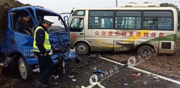 溧阳上沛公交与卡车相撞!两败俱伤!
