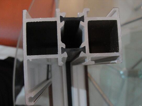 “断”,应该是隔断的意思。“桥”是建筑学中的一个概念,我的理解就是内外层铝材之间的桥梁。看下图,有两片黑色的隔热条。