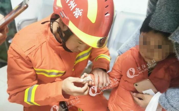 溧阳“熊孩子”手卡水果刀 消防员15分钟机智救援