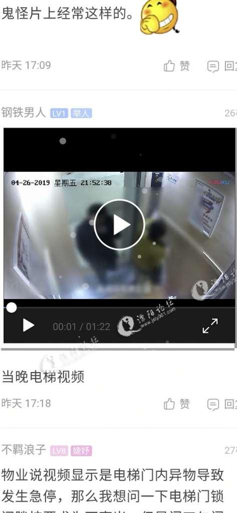 简约一生,网友,由于你一开始捏造电梯事故事实发帖,制造舆论来达到自己心里的目的,物业及时出来解释电梯事故具体情况,你欺骗了我们网友一次还不够,还继续发帖捏造事实,制造负面舆论,但是邪不压正!一位叫,钢铁男人,网友公布就视频,视频里全过程都很清晰明了!你什么时候,几楼下电梯的???做了什么,自己没点数?呵呵,你自己在贴中还说习惯性的看着楼层表!1.2.3到14..真能忽悠!按这么长的时间路程,你和家人小伙子怎么提前从5楼出来了?怎么回到家中睡大觉的?你玩呢?会分身?你的分身难道独自在电梯里看着楼层表直上14楼!佩服啊!你真能忽悠,把我们网友当猴子耍吗?希望你主动向大家道歉,给大家一个交待!